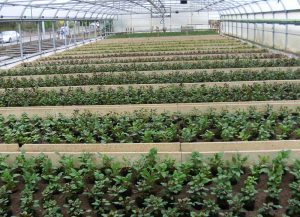 Wir haben zwölf beheizbare Gewächshäuser auf einer Fläche von 2350 Quadratmeter.