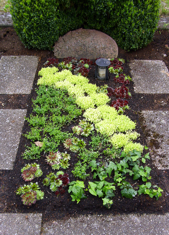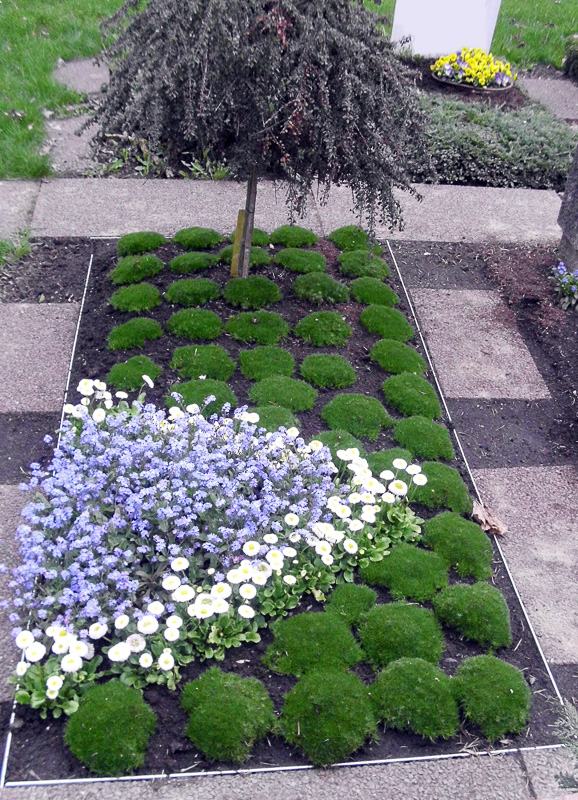 Um unansehnlichen Unkrautwuchs zu verhindern, eignen sich dauergrüne Bodendecker. Gräber, die mit winterfesten Koniferen und Bodendeckern bepflanzt wurden, müssen mehrmals im Jahr geschnitten und von Gras gesäubert werden.