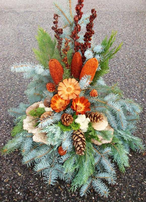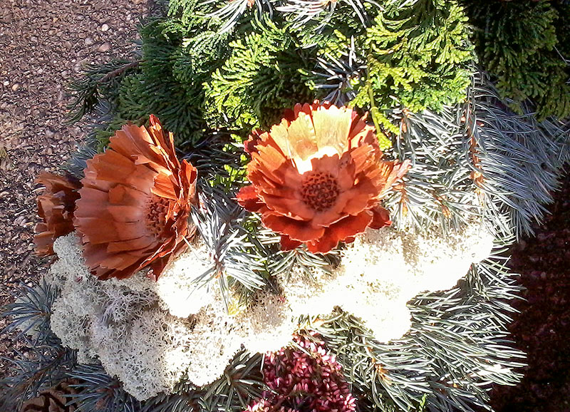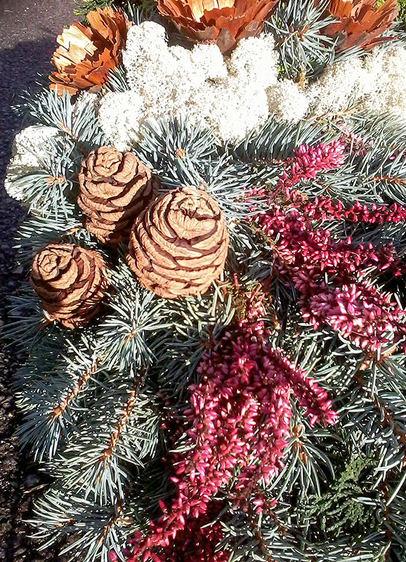 • Für den Winter bieten wir zusätzlich Grababdeckungen mit Weiß- oder Blautanne an und natürlich Wintergestecke für die Gedenktage Allerheiligen und Totensonntag.