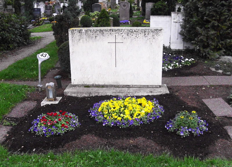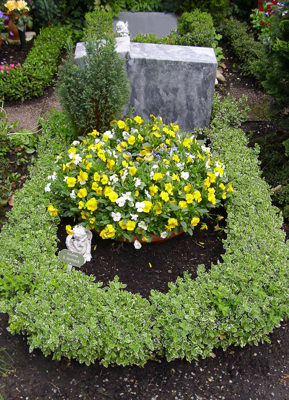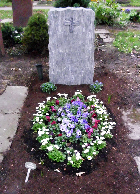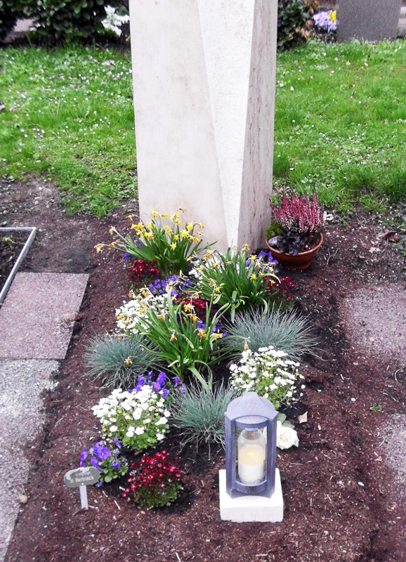 • Dabei werden die Gräber im Frühling / zu Ostern mit Stiefmütterchen, Bellis, Vergißmeinnicht und Narzissen bepflanzt.