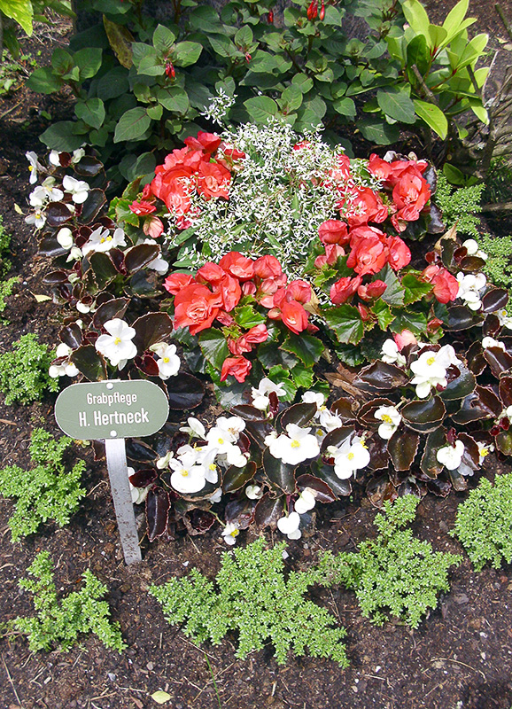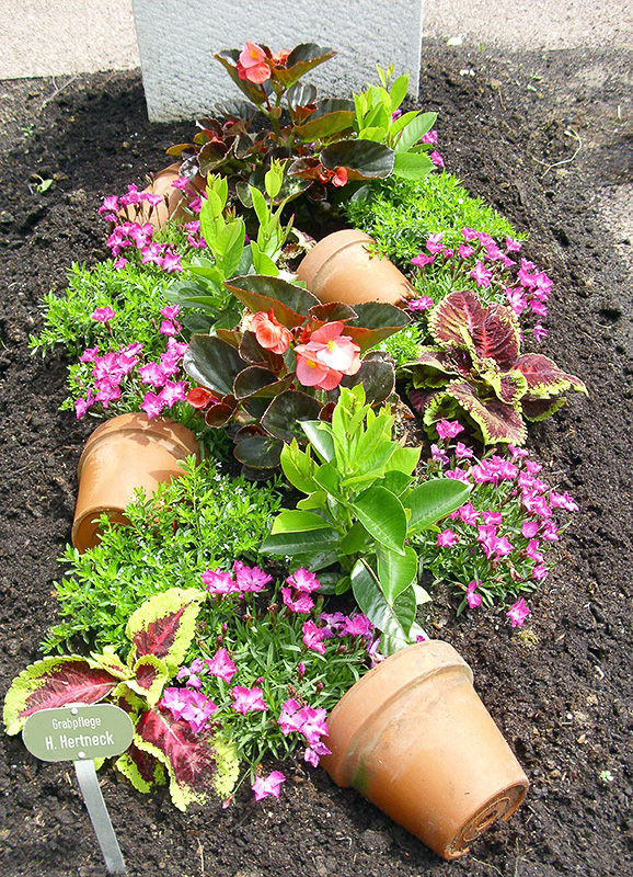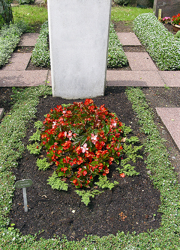 • Im Sommer steht selbstverständlich ein breites Pflanzensortiment zur Auswahl und wir bepflanzen ihre Grabstätte mit den geeigneten Pflanzen. Je nachdem, ob die Grablage schattig oder sonnig ist, verwenden wir z. B. Eis- oder Knollenbegonien, Fuchsien, Impatiens oder hochwertigen Dipladenien.